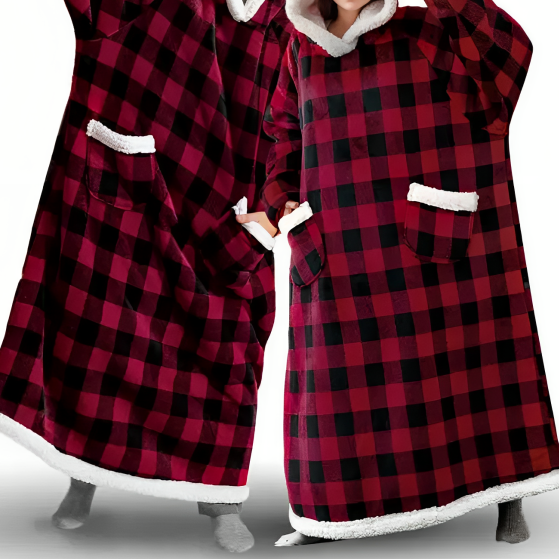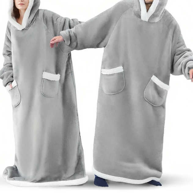 The surprisingly comfortable hoodie combines the warmth of a comfortable blanket with the comfort of your favorite hoodie. It is made of extra-soft wool and the inside is made of plush Sherpa material. The large size keeps you warm from head to toe. Equipped with an oversized hood to keep your head warm and comfortable, and a large, wide pocket to keep your needs wherever you are. It is even reversible!!