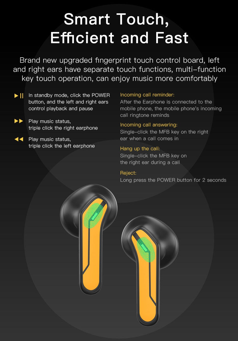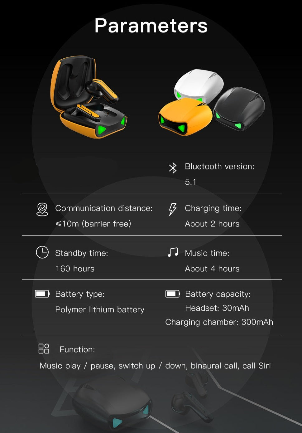 4. TWS pairing: open the charging case and TWS earphones into pairing mode. Android and iOS mobile phones with Bluetooth on, directly search for the device name to connect.