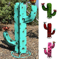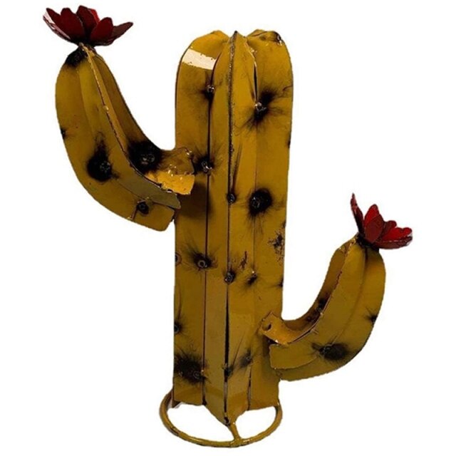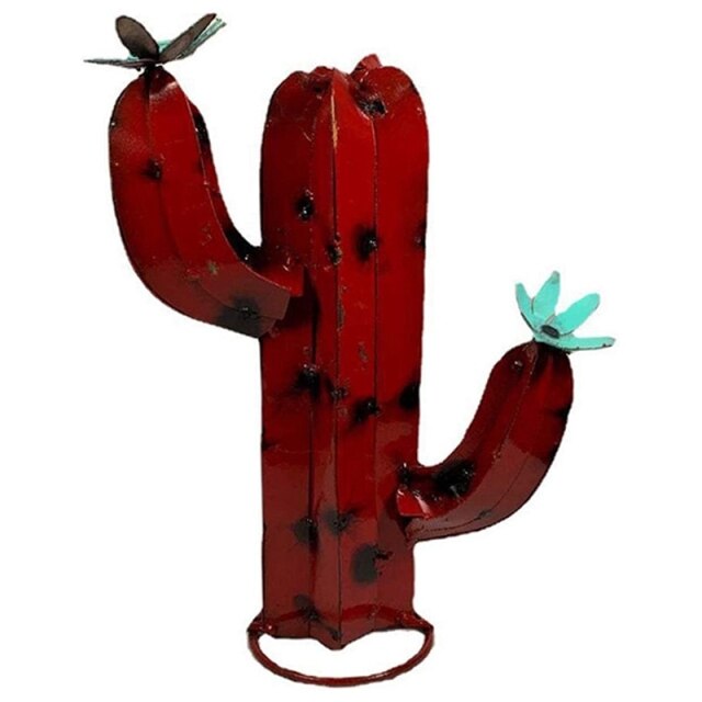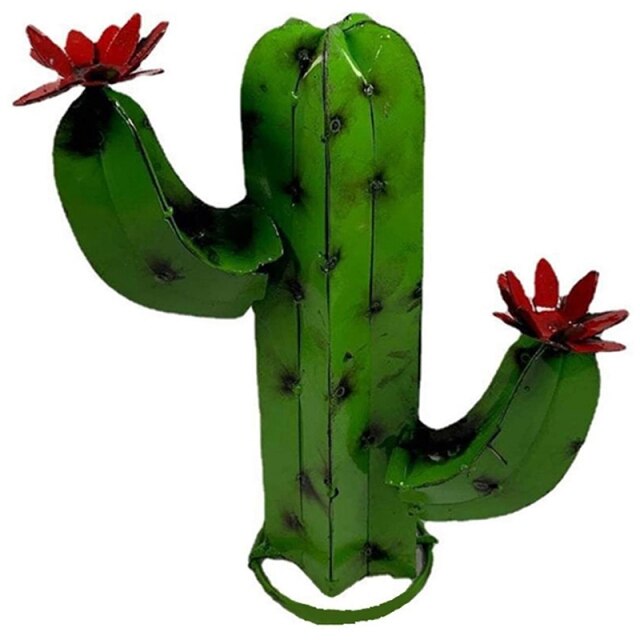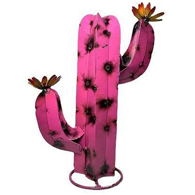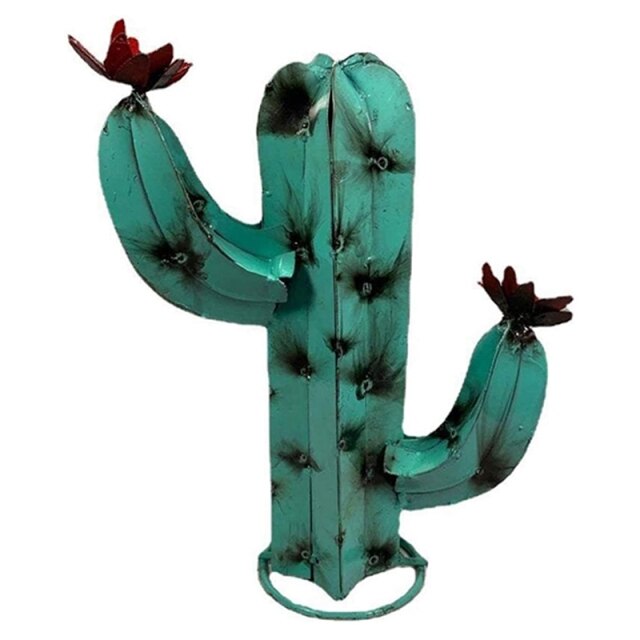 The cactus decor is a creative way to add some flair to your home. This product is metal art cactus decor that can be used indoors or outdoors and does not require water.