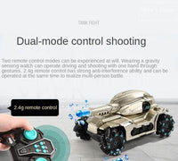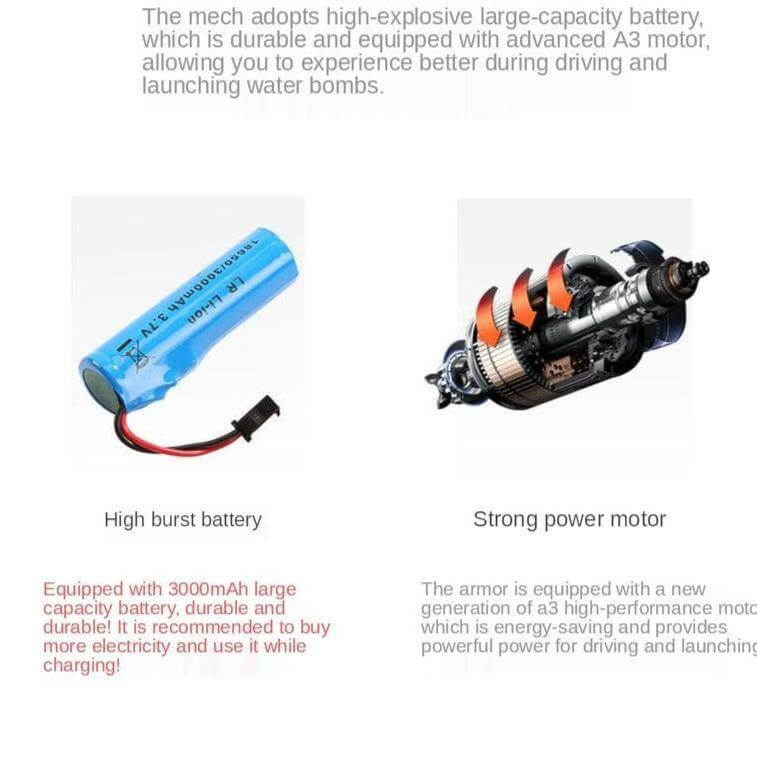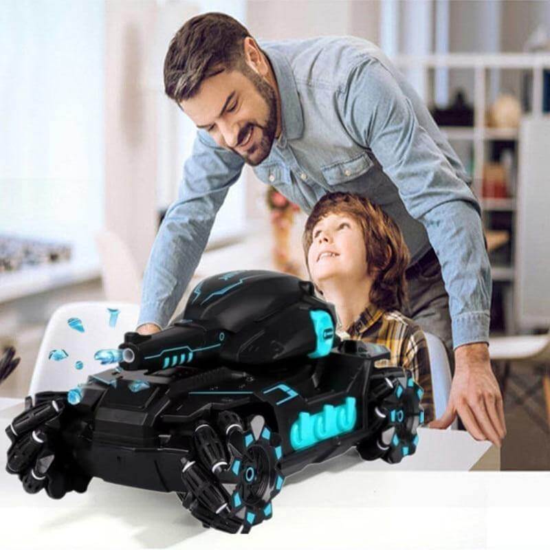 The giant tank is a remote control tank that integrates remote control driving and launching water bombs. Equipped with a variety of control methods, two remote controllers, a handle controller, a wearable gesture sensor controller, Multiple intelligent driving modes, unlike traditional remote control cars, it is smarter and has more functions. Suitable for adults and children to play together. You can compete with each other in multiplayer games.