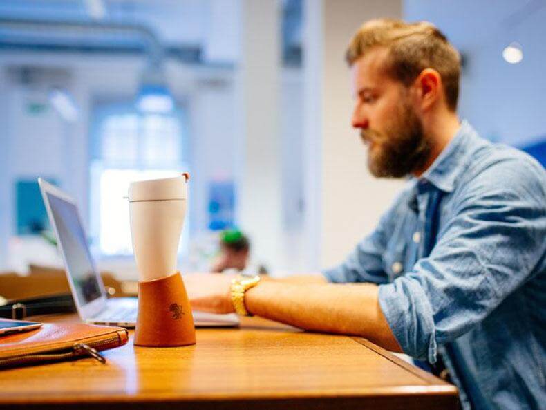 4.The leather case design of the cup not only a beauty, you can also make it as the stent, that will easy to stand on the table. This Thermos Mug does not contain BPA, is 5.very safe and health for human body