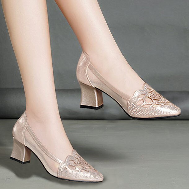 With a sleek design and comfortable fit, these heels are perfect for any occasion. The stylish mesh fabric is breathable and helps keep your feet cool and dry. The high heel and cushioned footbed provide ultimate comfort and support. Whether you're dressing up for a special occasion or just looking to add a touch of elegance to your everyday look, the Golden Flower Breathable Mesh High Heels are a must-have.