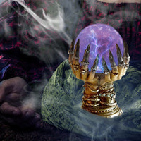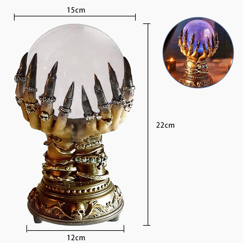 Like the cold gem-like hand, the witch's hand can keep fate. With hands reaching out from the Gothic platform, hold this mysterious glass sphere, where the light inside changes color, convincingly showing the activity of another world.