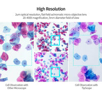 Approximately 20-400X magnification, 5mm diameter field of view, ultra-high resolution.