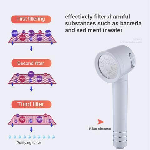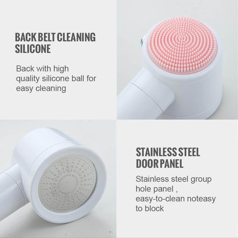 When taking a bath, the back is a long distance away, the hands can never reach the back, and the back is always not clean. The back of this showerhead has high-quality silicone balls to clean your back. You can use this soft surface not only on your back but also when cleaning your body. You can take a shower with clean water thanks to its water filtering feature.