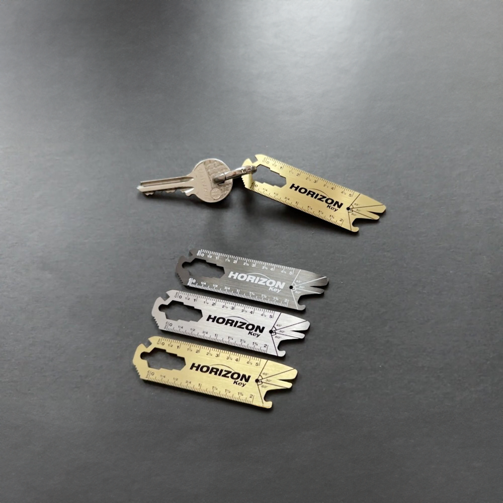 Horizon Key® is the equally impressive sibling of Horizon Helvetica®, designed to be a highly versatile keychain tool. It’s also inspired by the Helvetica typeface and offers a unique blend of utility and design. Equipped with functions like a bottle opener, hex bolt openers, a mini saw, a screwdriver, and a straight-edge ruler, it turns your keychain into a mobile toolbox. Its compact form makes it unnoticeable until you need it, and its design turns heads when you use it.