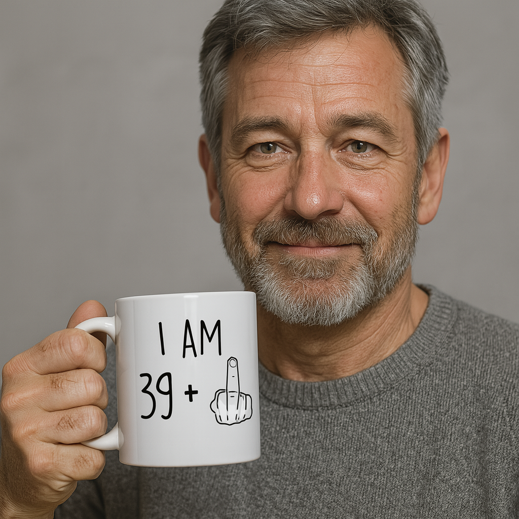 Getting older? Who cares! Embrace the chaos of aging with the I Am 39 Plus Middle Finger Mug — the ultimate mug for anyone who’s tired of pretending birthdays are fun after 30. Whether it’s your 40th, 45th, or 50th, this mug delivers your message loud and clear... with a cheeky middle finger and a big dose of humor. It’s not just a coffee mug — it’s an attitude.