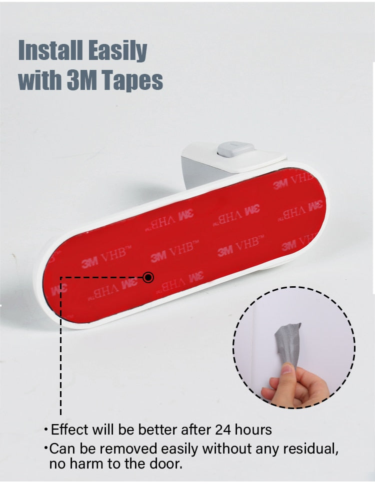 Easy Installation: Install the lock directly by just peeling the 3M VHB adhesive tape and placing the lever lock on the door. No drill or tools are needed. 3M VHB adhesive tape with strong viscous (Effect will be better after 24 hours) and can be removed easily without any residual, no harm to the door.