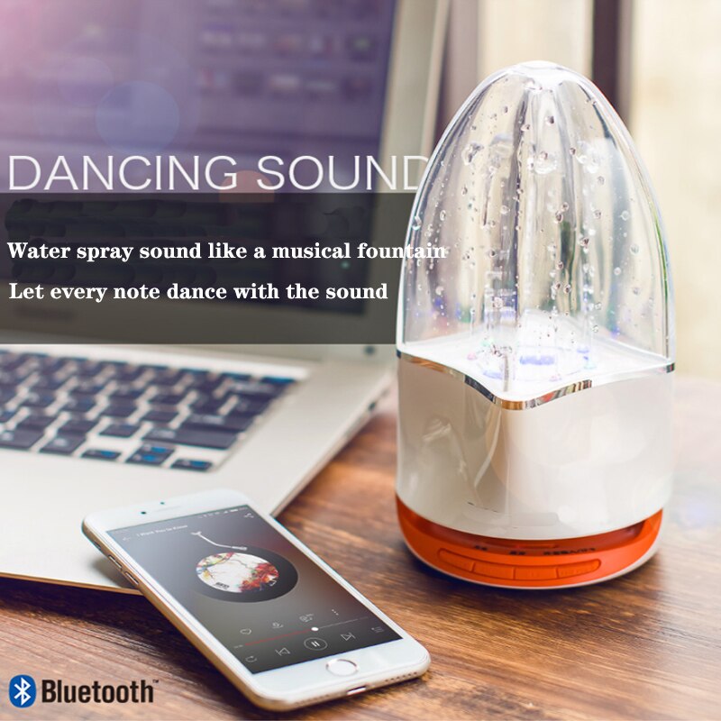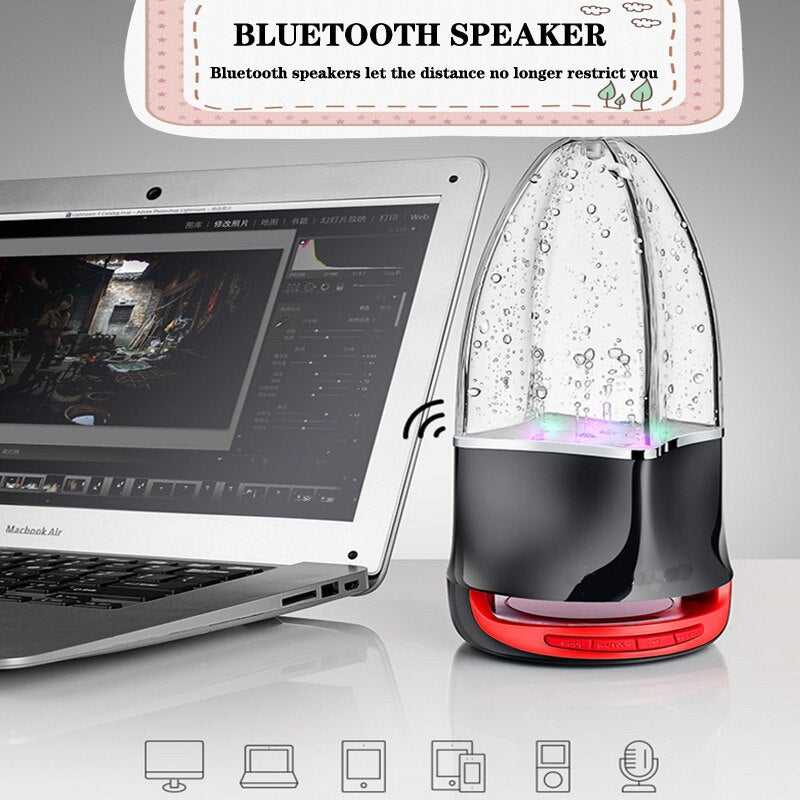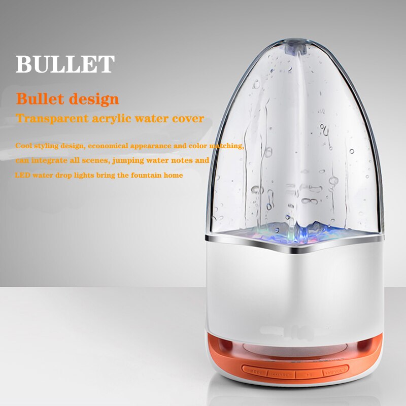 This fountain portable Bluetooth speaker is the latest design of a Bluetooth speaker, which is equipped with various fountains on the inside of the device; the device is white and can be seen in colorful colors from the outside. It looks wonderful and unique to hear the music and the fountain that makes a cool feel in your room or room.