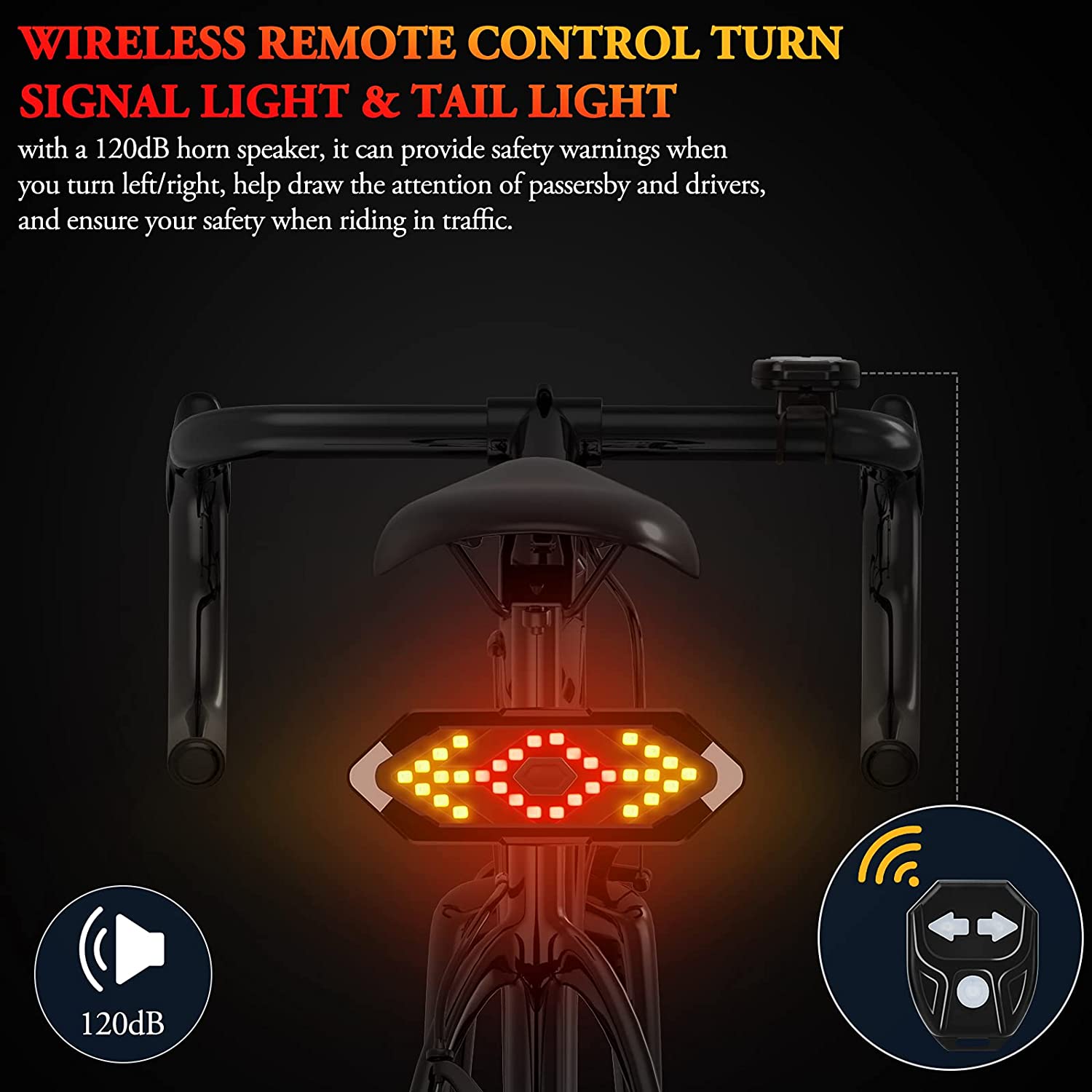 With 3 easy-to-use buttons on the wireless controller, the bicycle tail light can be remotely controlled to send signals in 5 different modes. Include turn right + high decibel speaker, turn left + high decibel speaker, red light always on, red light flashing and all flashing. You can change different modes according to your needs and occasions, effectively reminding passing vehicles.