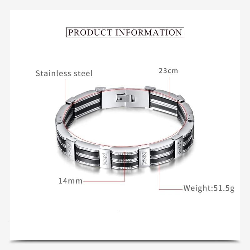 Luxury Black Silicone Stainless Steel Bracelet Men