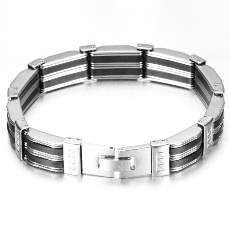 1x Luxury Black Silicone Stainless Steel Bracelet Men