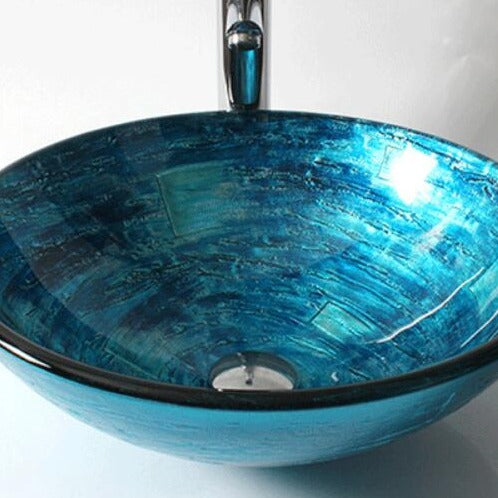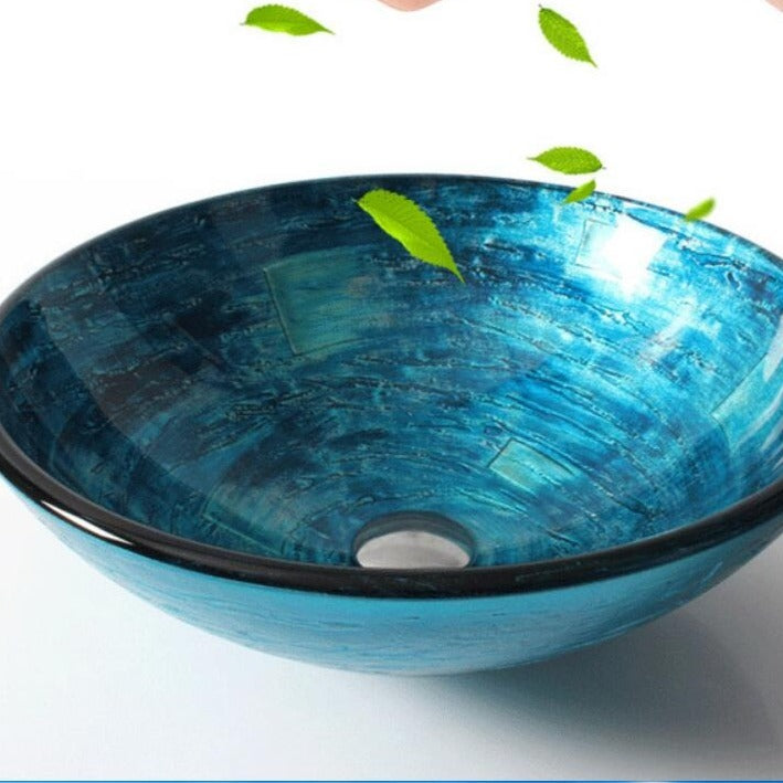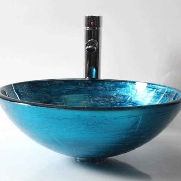 1x Luxury Vintage Bathroom Round Tempered Glass Sink