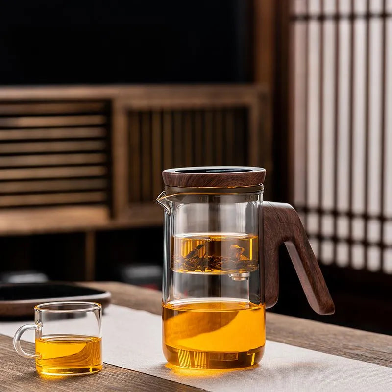This tea maker set features a magnetic brew mechanism, offering a modern and automatic way to steep your favorite teas. The set includes a filter that efficiently separates the leaves from the liquid, ensuring a perfect brew every time. Its design is both elegant and functional, with the magnetic feature allowing for an easy and entertaining brewing process. Ideal for tea enthusiasts who appreciate convenience without compromising on the quality of their brew, this set is a seamless blend of innovation and tradition in tea making.