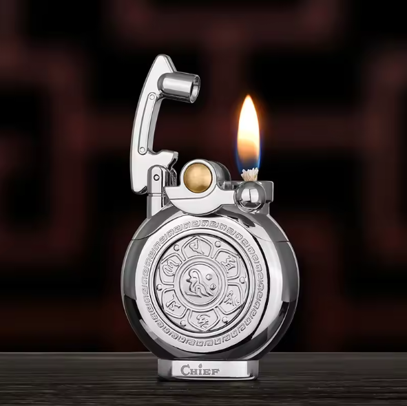 Step into a world of firepower elegance with the Mechanical Flip Top Kerosene Windproof Lighter. Built for performance and style, this lighter uses kerosene fuel and features a precision mechanical flip top that resists wind with ease. The antique zodiac engraving brings an extra touch of personality to every spark.