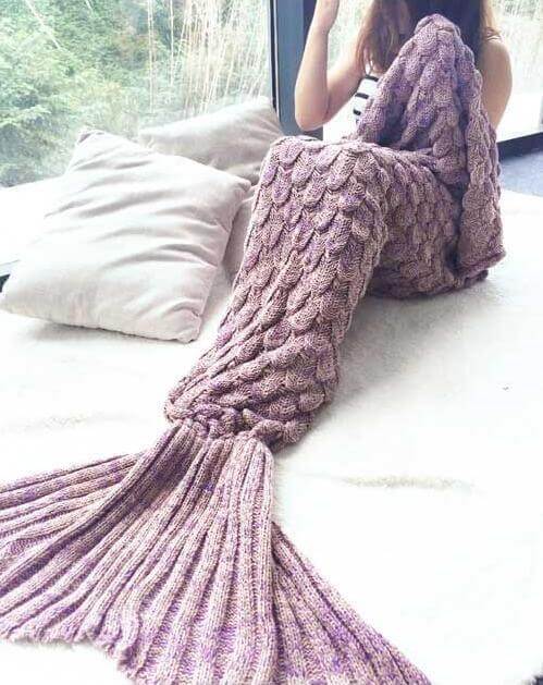 Yarn Knitted Mermaid Tail Blanket Handmade Crochet Mermaid Blanket Kids Throw Bed Wrap Super Soft Sleeping Bed
