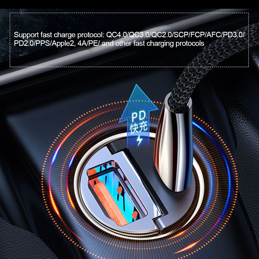 Fast charging for two devices at the same time: The car charger fast charging can fast charge all mainstream mobile phones at the same time. PD interface, the charging speed is 3 times faster, and the aluminum alloy shell greatly improves the heat dissipation capacity of the product, which is safe and reliable. The maximum output power is 38w.