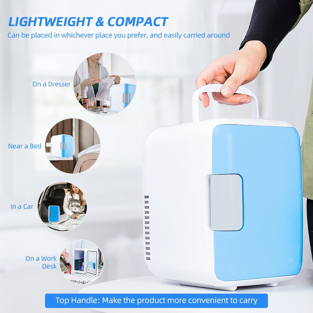 Portable Design. This home & car dual use fridge is specially designed with compact body and light weight, enabling it to be effortlessly carried around and brings freshness to your cosmetics, food and even medicine.