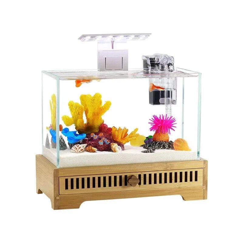 Bring the serenity and beauty of aquatic life to your living or workspace with the Mini Underwater Haven Desktop Aquarium. This compact and stylish desktop aquarium provides a calming and mesmerizing environment for your favorite small fish and aquatic plants, making it a delightful addition to any interior.