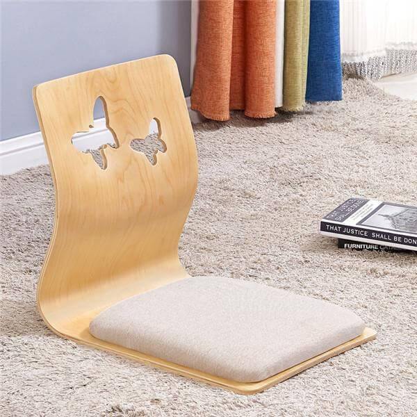 This modern Japanese legless chair is made from plywood. It has a comfortable back and has a soft fabric to sit on. It is great for reading, watching TV, and resting. This chair would be a great addition to any home or office.