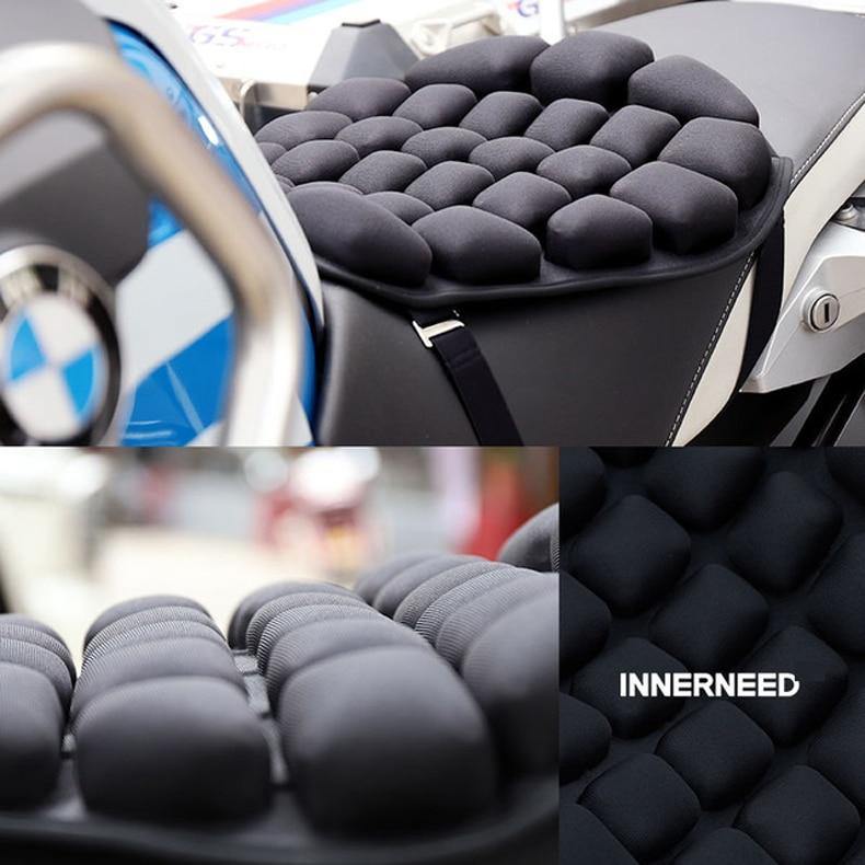 Motorcycle Seat Cushion, for when you're on the road and need to take a break. . This product is an inflatable seat cushion that provides shock absorption and stress relief while on your bike. It has anti-skid particles so it doesn't slide around, as well as double bandage fixation so it's more secure and stable. This product would be great for anyone who spends time on their motorcycle.