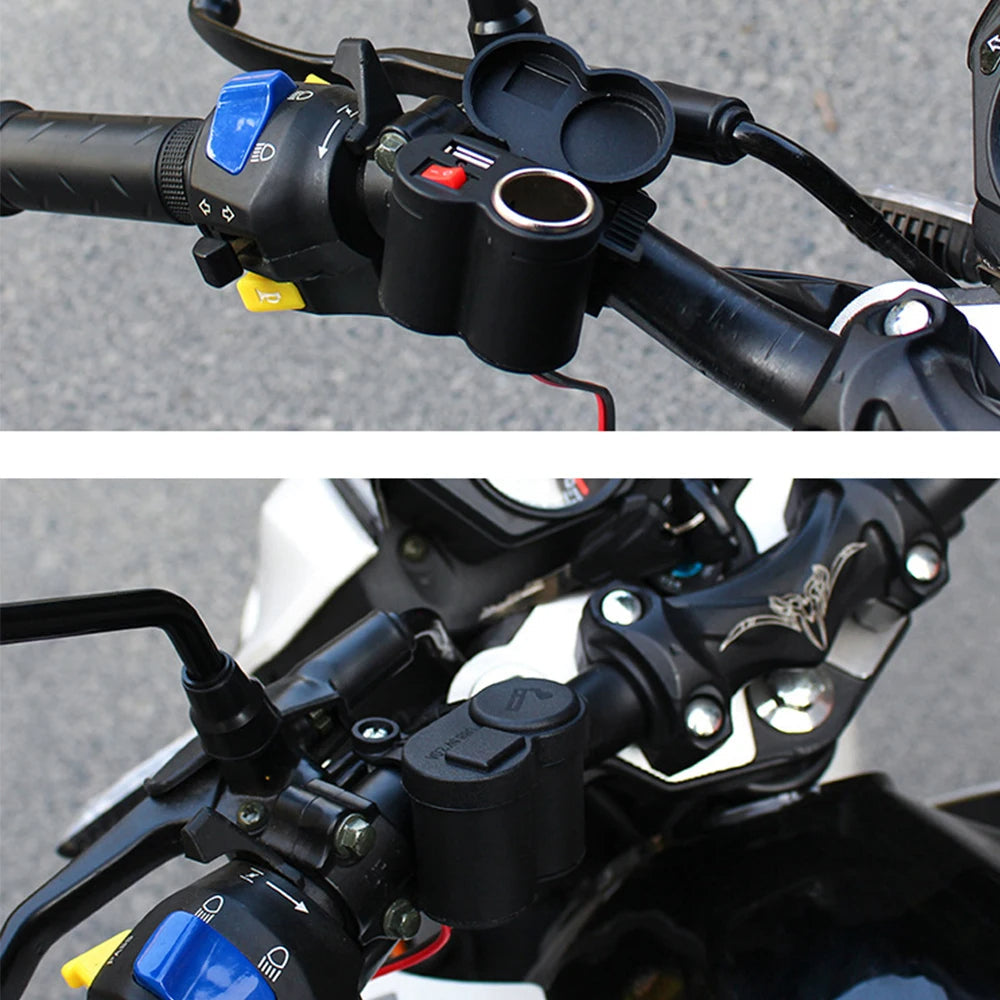 This motorcycle handlebar USB charger is a waterproof and durable accessory, designed to keep your devices powered up during rides. Easily mountable on the handlebar, it provides convenient access to charging, ensuring you stay connected even on long journeys. The waterproof feature guarantees functionality in all weather conditions, making it a reliable tool for any motorcyclist. Whether for navigation, music, or keeping in touch, this USB charger is an essential for modern riders who need their gadgets ready and powered at all times.