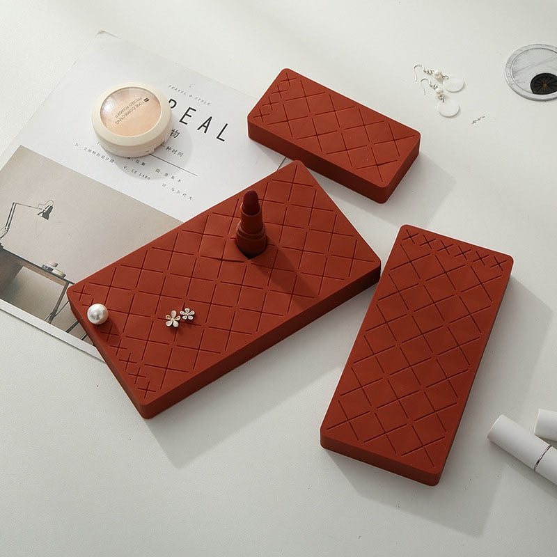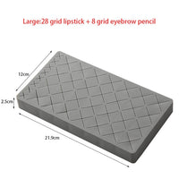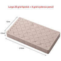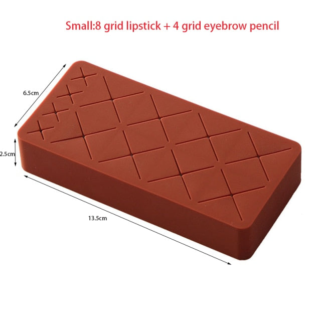 Creative Chocolate Design - A lipstick organizer and storage consisting of 8/18/28 large slots for lipstick, large makeup brush, nail polish, thin tube skincare cosmetics; 4/6/8 small slots for eyeliner, eyebrow pencil, small brush, makeup pencil, earrings or other ornaments, etc.