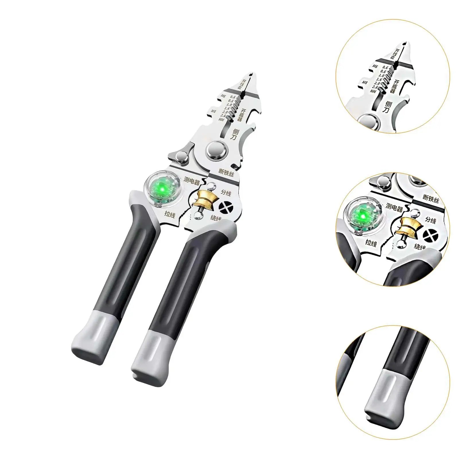 The Multi-Task Wire Stripper Voltage Detector Plier is an essential addition to any professional or DIY tool kit. Designed for electricians, technicians, and hobbyists alike, this versatile hand tool combines wire stripping, cutting, and voltage detection in a single, easy-to-use design. Built with quality stainless steel, it ensures durability and long-lasting performance even under heavy use.