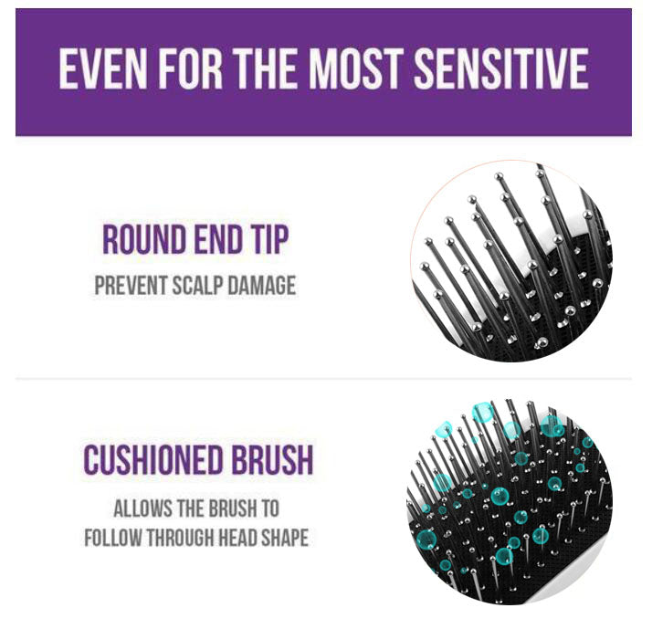 This negative ion vibrates the built-in anion generator, which can generate negative ions and neutralize the positive charge of static electricity. This helps condition, smooth and make hair shinier while reducing frizz and static. All the tips of the ionic comb are smooth and seamless, avoiding damage to the scalp or pulling hair during use, effectively solving the problem of hair knots. The tip has a larger contact surface and gently protects your scalp.