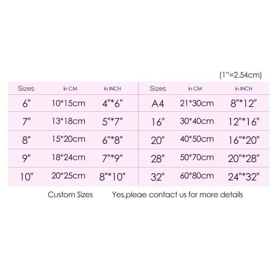 Size: 10x15cm 13x18cm 15x20cm 20x25cm 21x30cm 30x40cm 40x50cm 40x60cm etc.