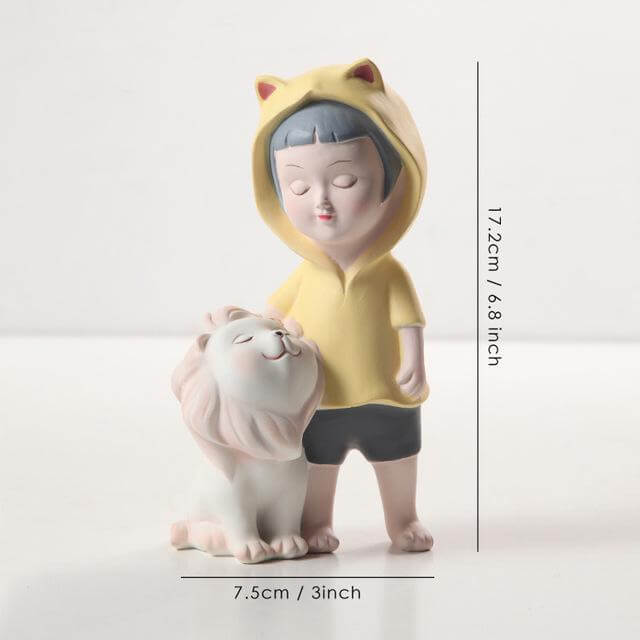 Nordic Fairy Girl With Lion Figurines - Image 0