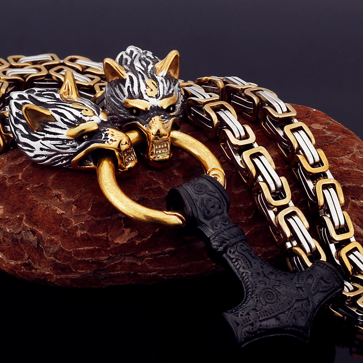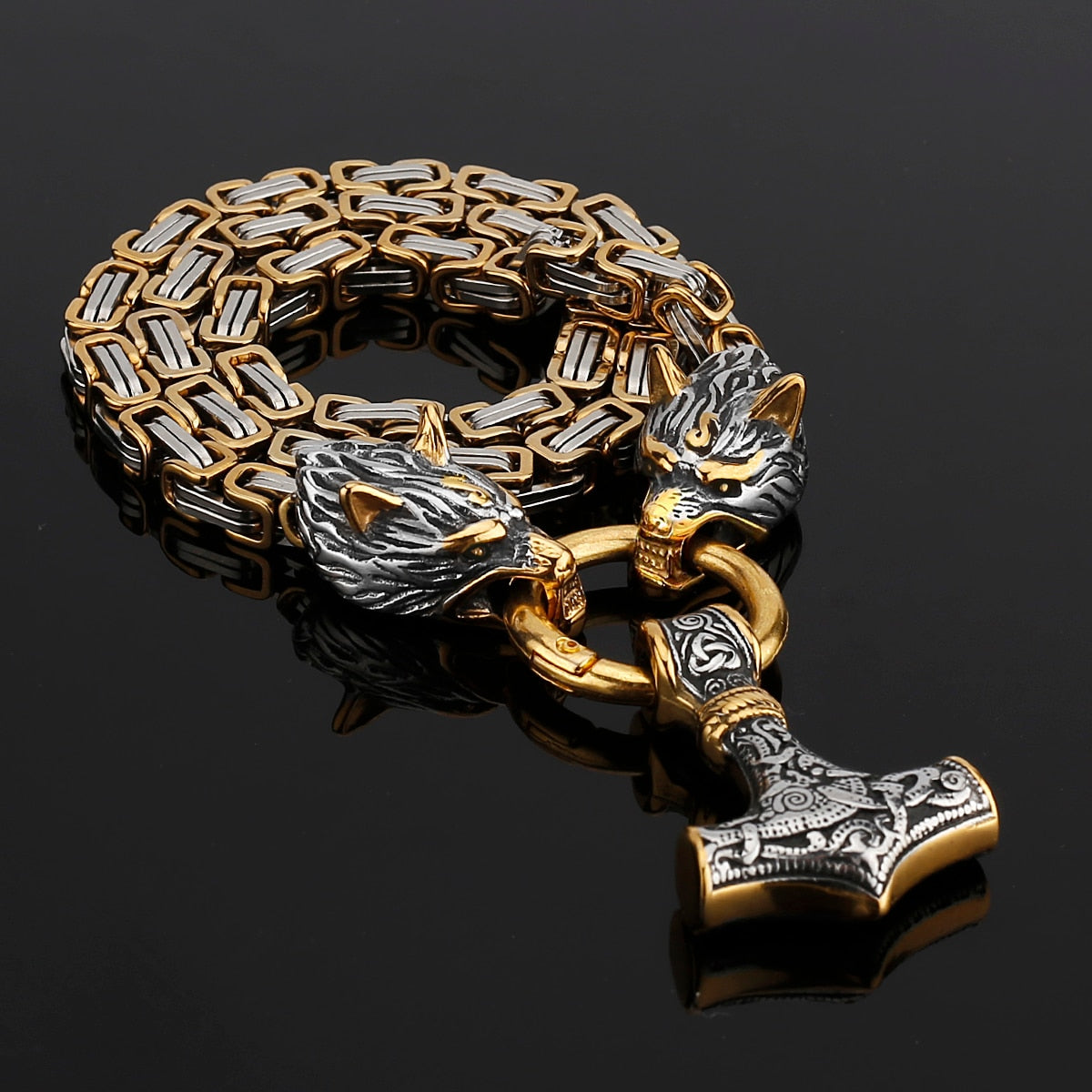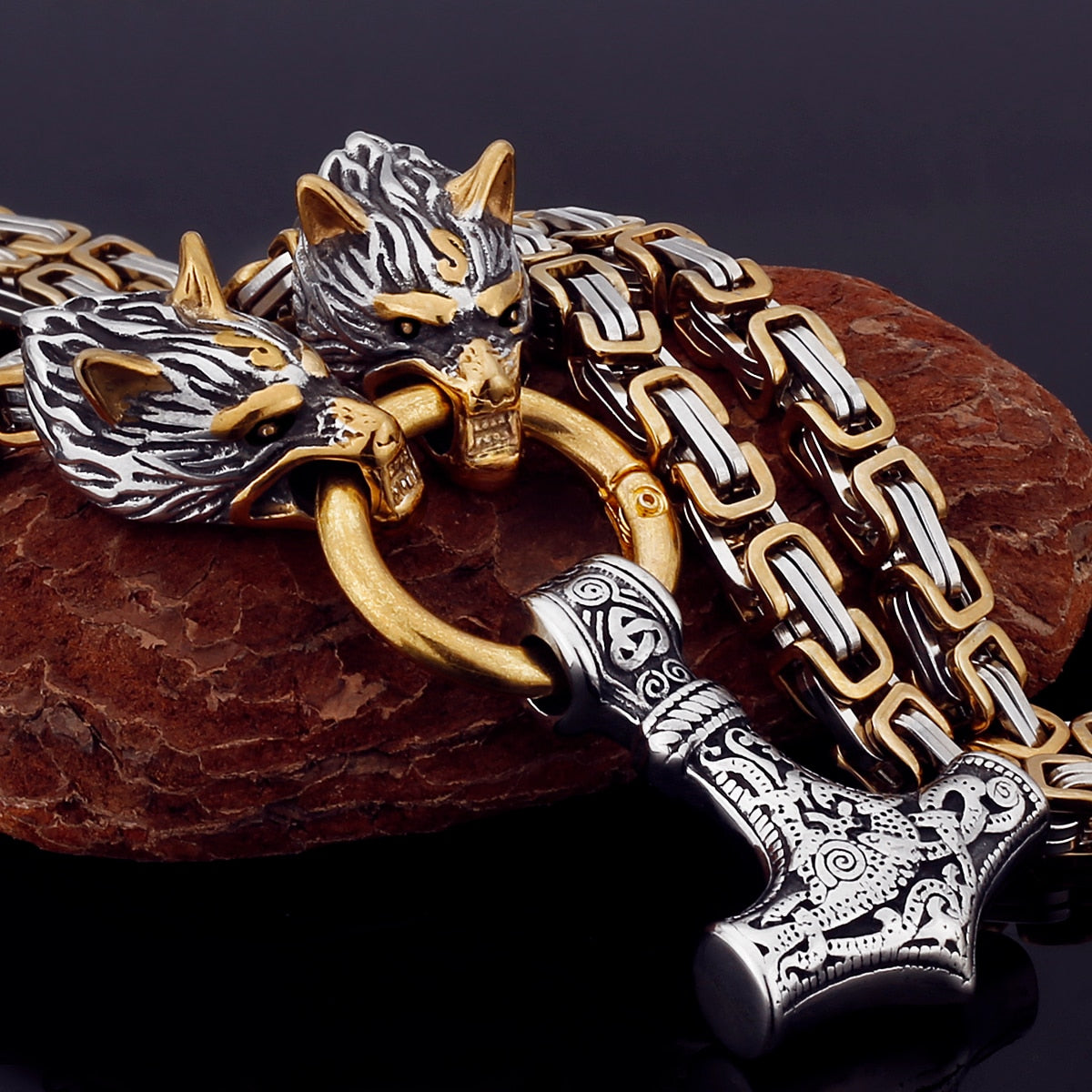 Nordic Viking Wolf Head Stainless Steel Necklace