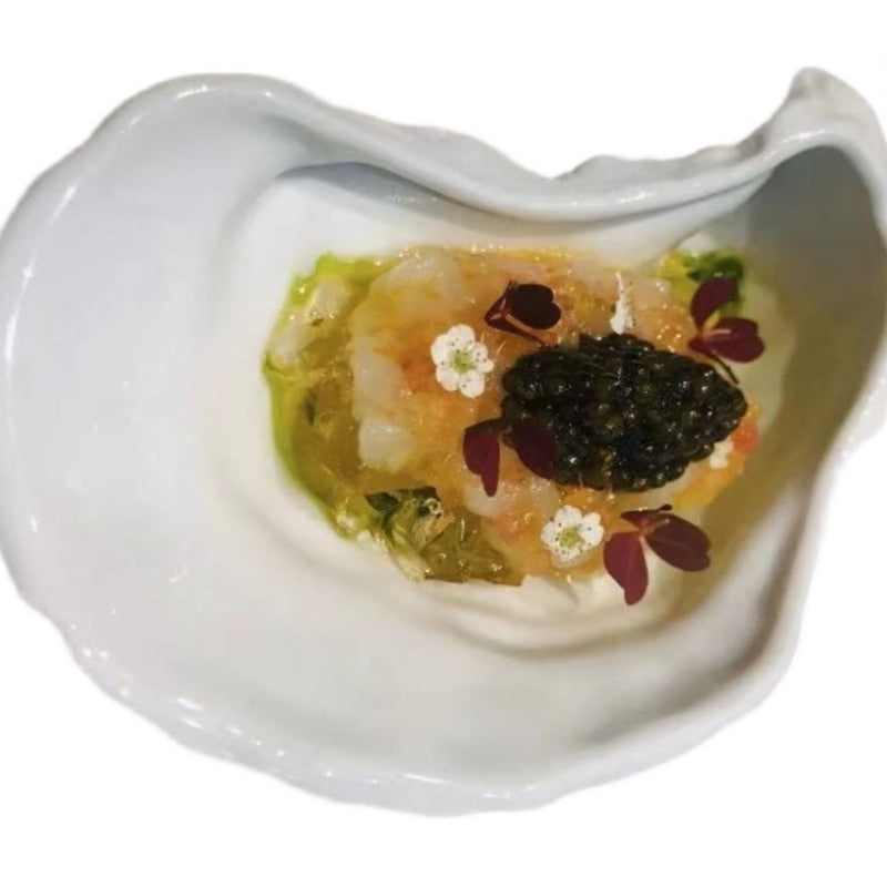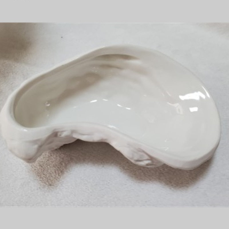 • Oyster Shaped Ceramic Plate is elegantly shaped, with an oyster shell base and an elegant petal-shaped rim.