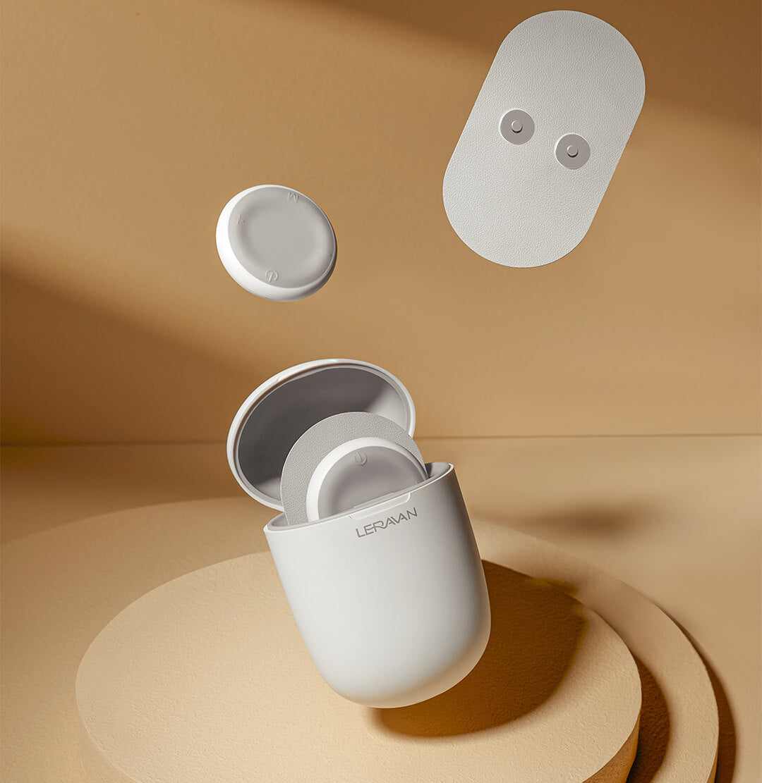 Installation: Take out two massage patches from the charging box, and align the patches with the magnetic buckles of the two hosts to make them fit together