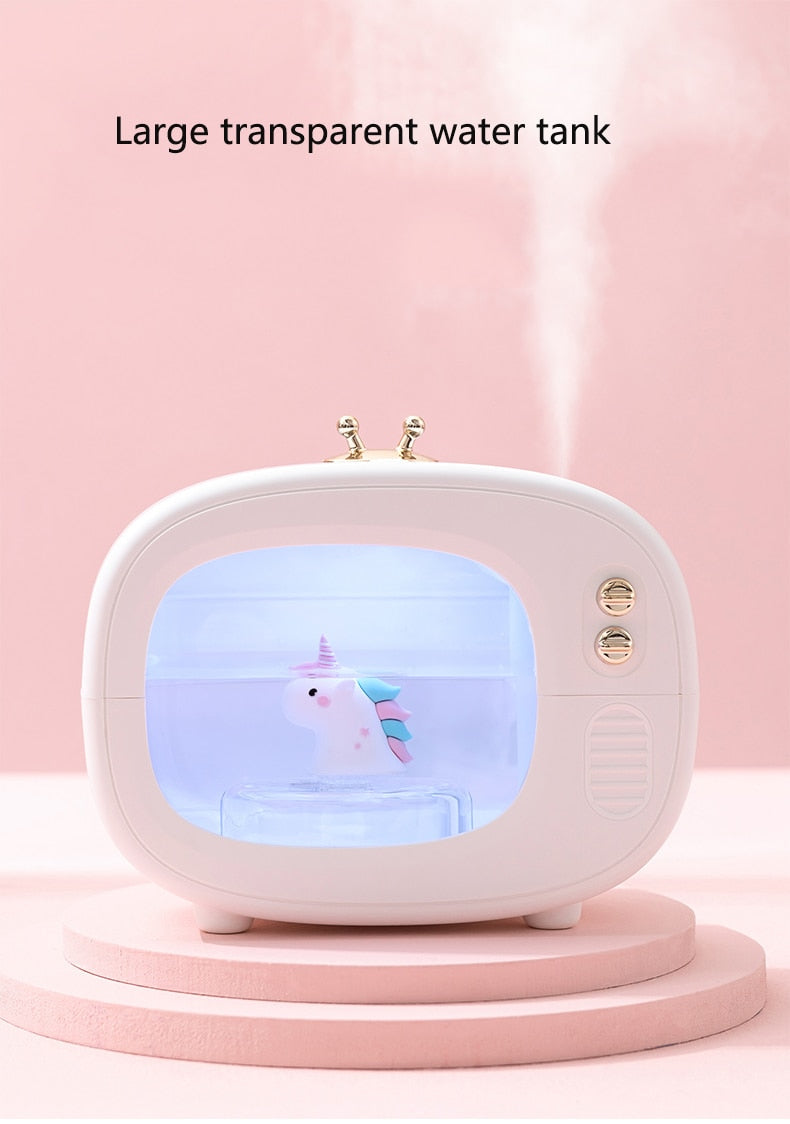 It is both a humidifier and an atmosphere light. Colorful atmosphere lamp design, LED light source is evenly distributed, soft and comfortable, and can be used as an atmosphere night lamp at night. The sparkling lights allude to the desktop, giving you a little romance in ordinary life.