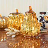 Glass Pumpkin Light: The classic mercury glass pumpkin light creates a shiny effect for Halloween, Thanksgiving, in autumn.