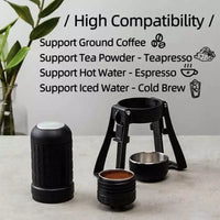 With its compact and lightweight design, this coffee maker is specifically crafted for travel. It easily fits into your backpack, suitcase, or even your car's cup holder, making it ideal for camping trips, road trips, or business travel.