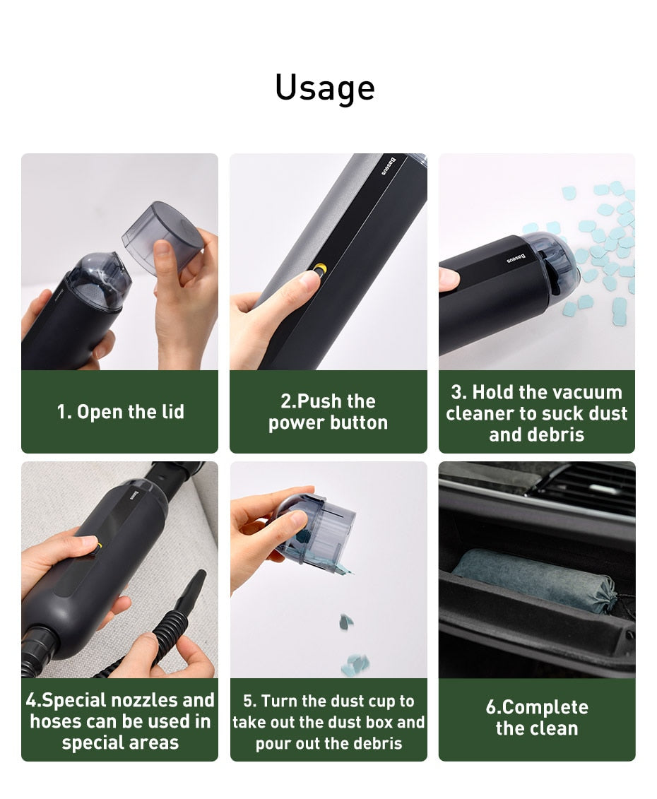The vacuum cleaner is a revolutionary invention that will help clean up any mess. Without cords, it can be moved anywhere. At the same time with various cleaning heads, can clean anywhere, such as car seat aperture, car dashboard, air vent, the sofa of the gap in the home, the blind angle, etc.