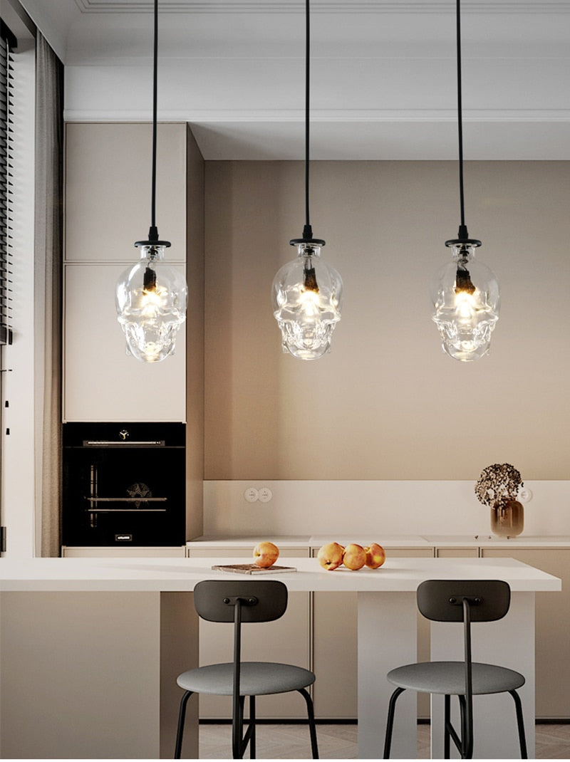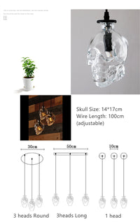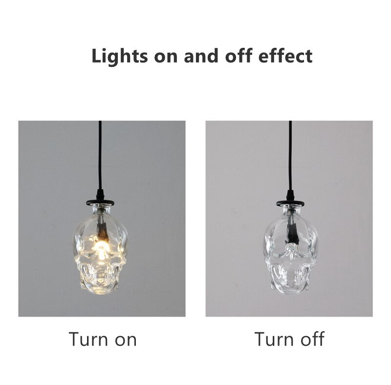 This is a stylish and contemporary pendant light that will make your room come alive. It features a glass skull with an LED bulb inside, which casts the perfect amount of light to illuminate any space. Hang it from the ceiling or mount it on the wall to create a unique lighting fixture for your home.