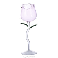 This wine glass is a great way to enjoy your favorite red or white wine. The stemless design makes it easy to hold, and the unique shape of the glass will have everyone's eyes on you! This product is an elegant 3D rose-shaped wineglass smoked to give it a molecular look.