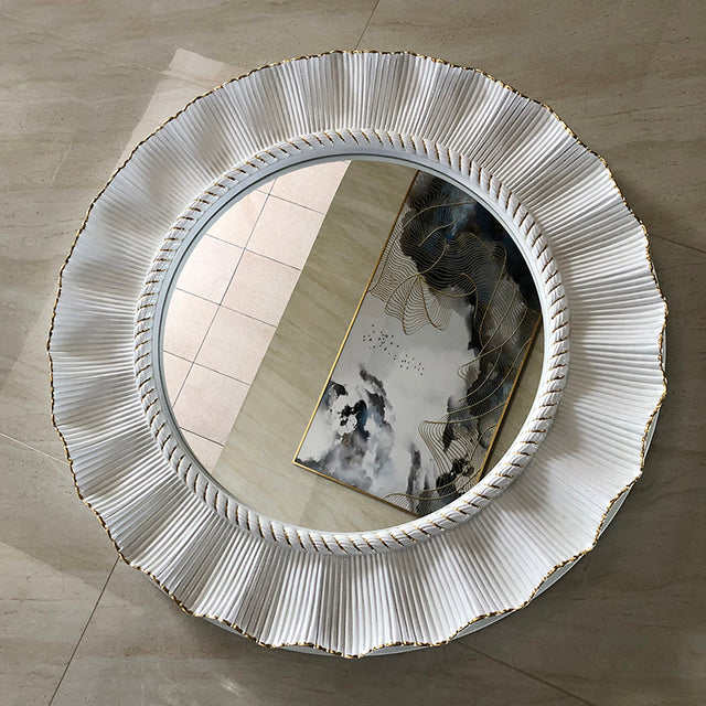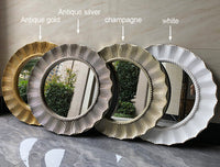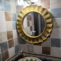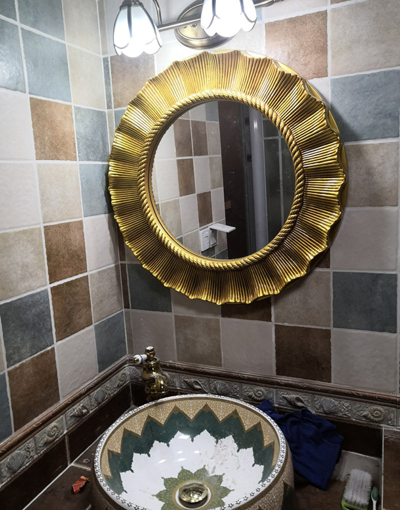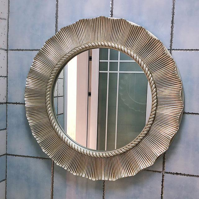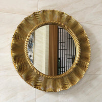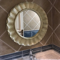This round big wall mirror is perfect for any room to create a more comforting and cozy feeling. It has an antique bronze finish that looks great in any setting, from rustic to modern.