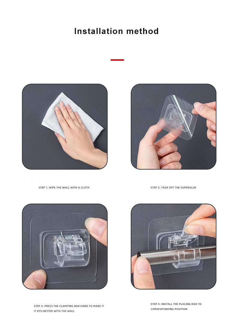 - You can install this curtain rod bracket without any tool; just use it with self-adhesive backing. You can wipe the wall and keep it dry, peel off the protective coating on the back and stick the position as you need.
