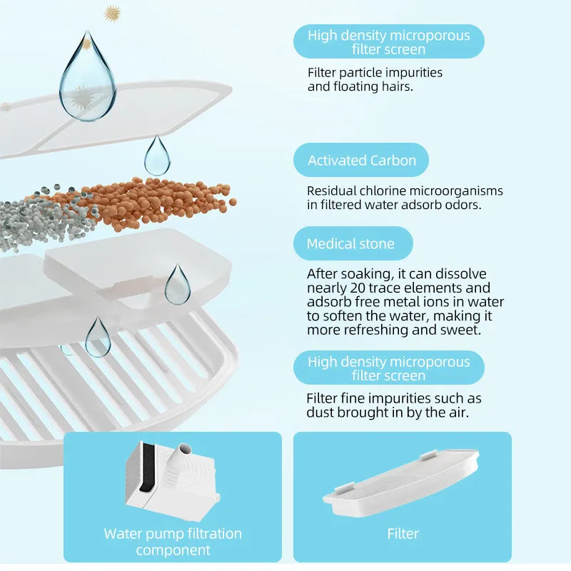 Keep your furry friends hydrated effortlessly with this pet water dispenser. This efficient dispenser ensures a constant supply of fresh water, eliminating the need for frequent refills. With a noiseless operation, it allows your pet to drink without any intimidating sounds, making it perfect even for the most timid animals.