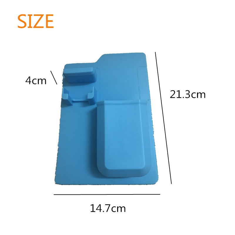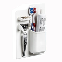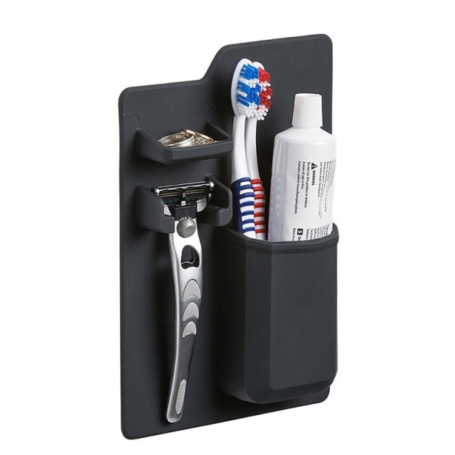 No Suction Cups, No Adhesives, No permanent mounts.A silicone toiletry organizer for small bathroom items.