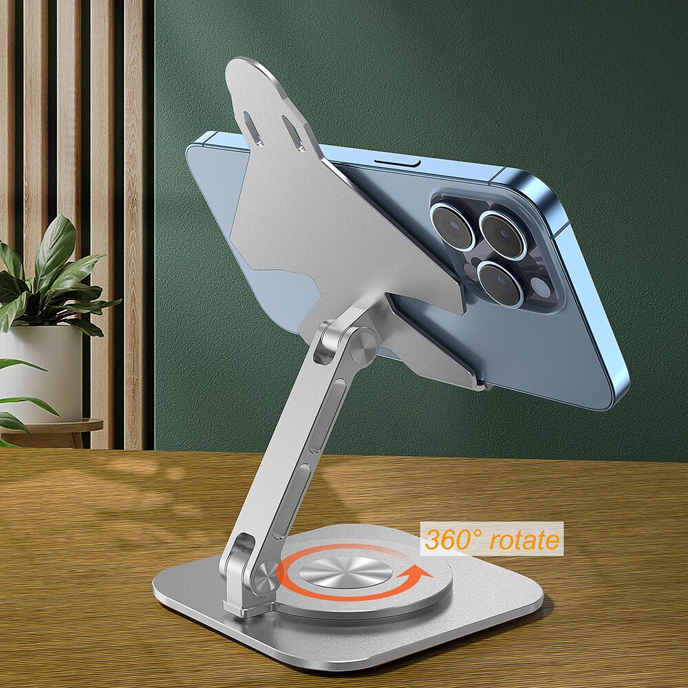 Elevate your device experience with this aluminum foldable phone stand. Crafted from durable aluminum, this stand promises sturdiness and longevity while boasting a sleek, minimalist design. Its foldable feature makes it perfect for on-the-go users, ensuring that you have an optimal viewing angle no matter where you are. Whether you're video chatting, streaming content, or following a recipe, this stand provides the support and stability your device needs.