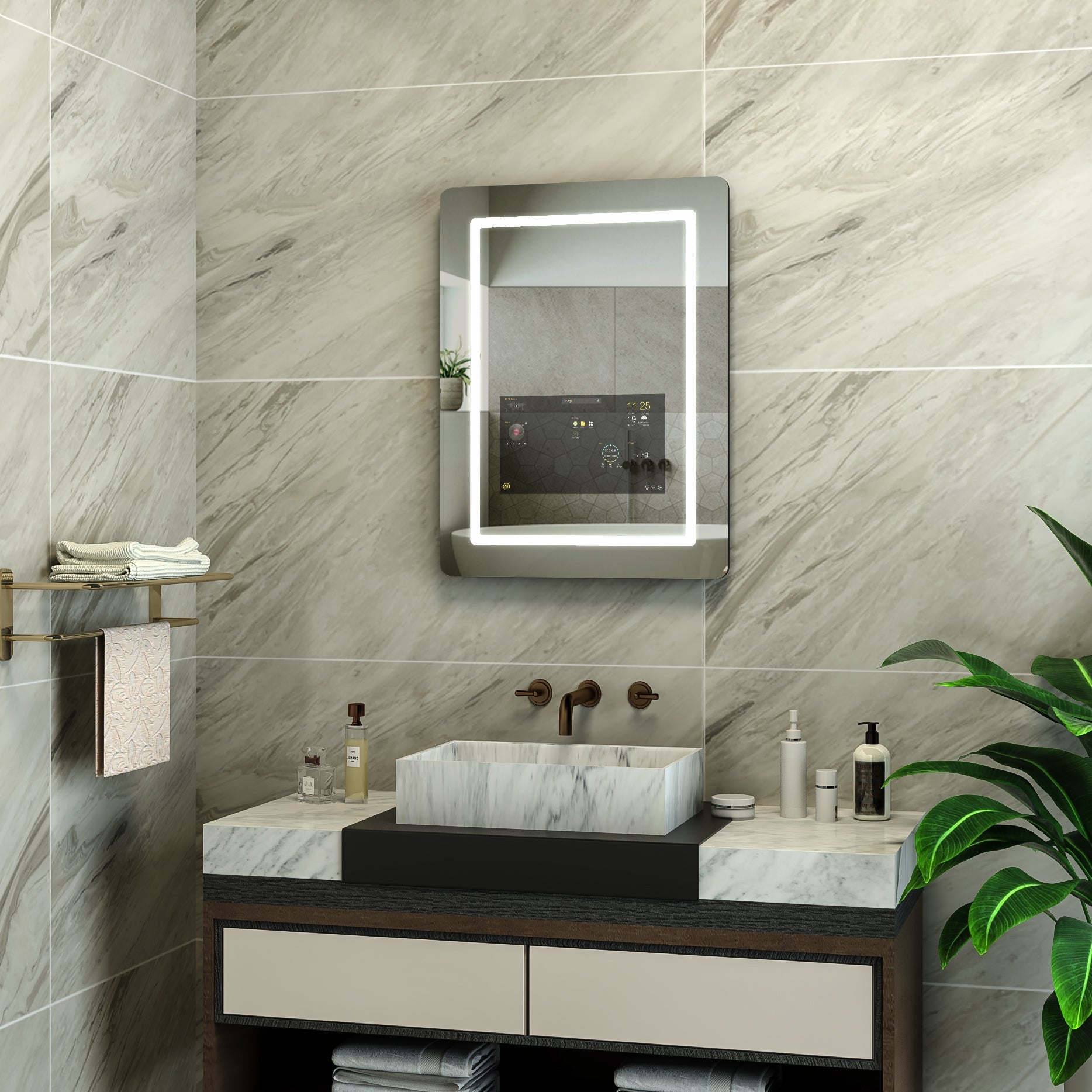 This LED wall mirror is not just a typical mirror. The Smart LED Wall Bathroom Mirror is a high-tech marvel that features a built-in LCD display and advanced touch controls. With this mirror, you can easily keep track of your daily routine and health goals.
