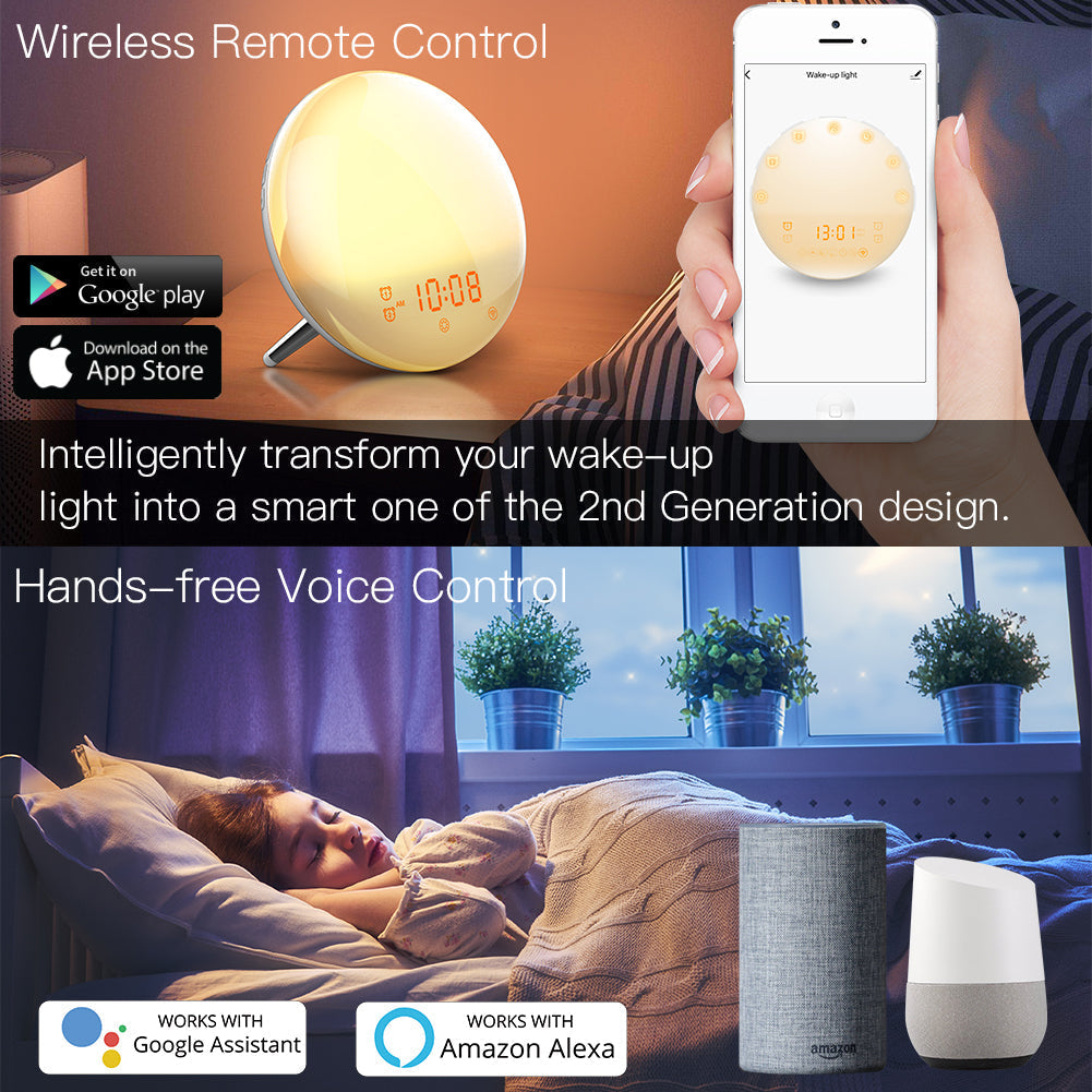 The new 2nd Generation smart wake-up light is compatible with Amazon Alexa, Google home that enables it to work with voice commands, no cable needed, just requires 2.4GHz WiFi to operate with much more convenience and fun. Easily free your hands in a smarter way.