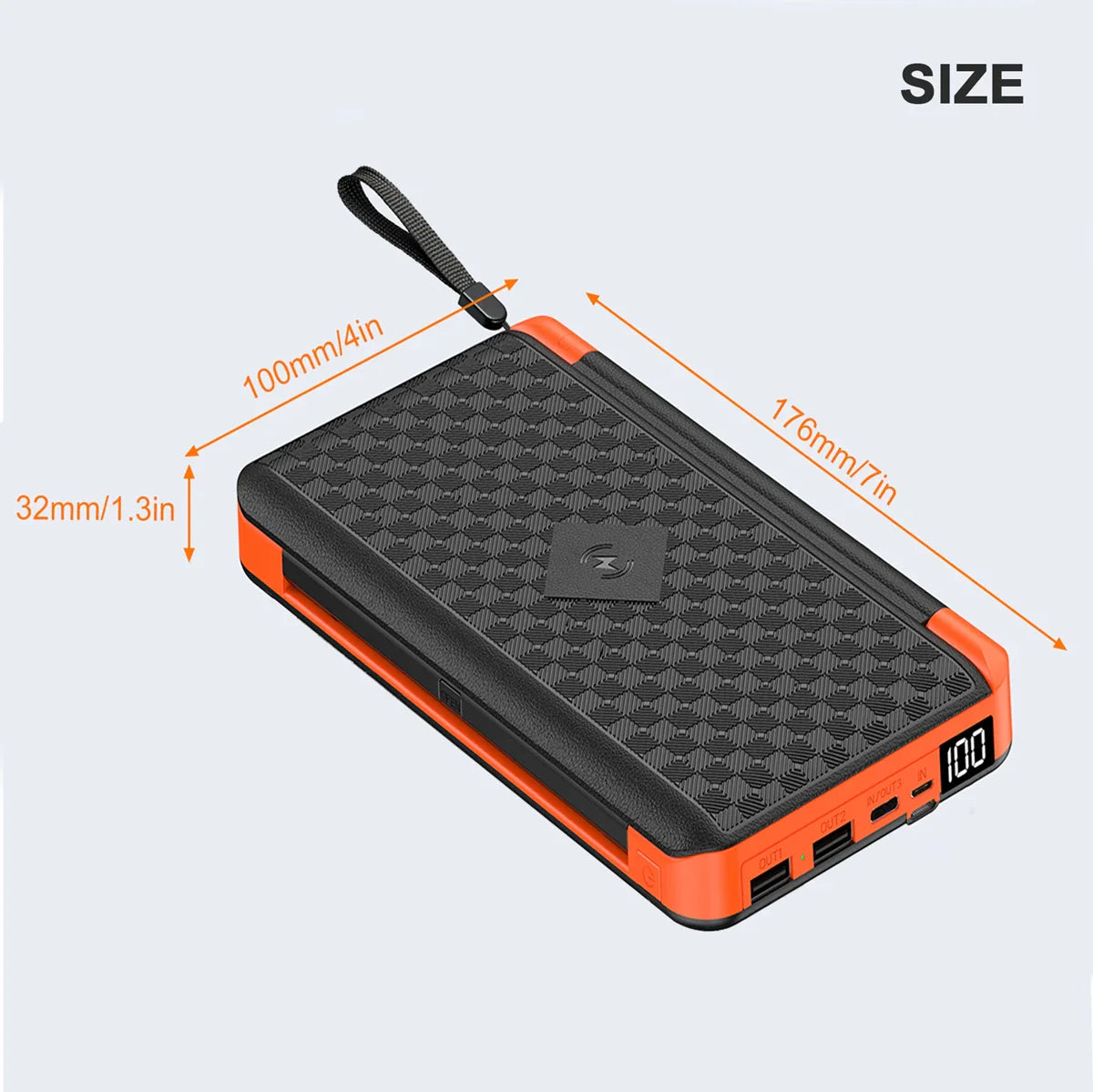 High Capacity: 20000mAh battery ensures multiple device charges.