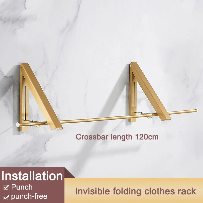 The Space Saver Foldable Wall Clothes Aluminum Rack is a versatile and practical storage solution for your clothes. Made from high-quality aluminum, this rack is designed to be durable and long-lasting.
