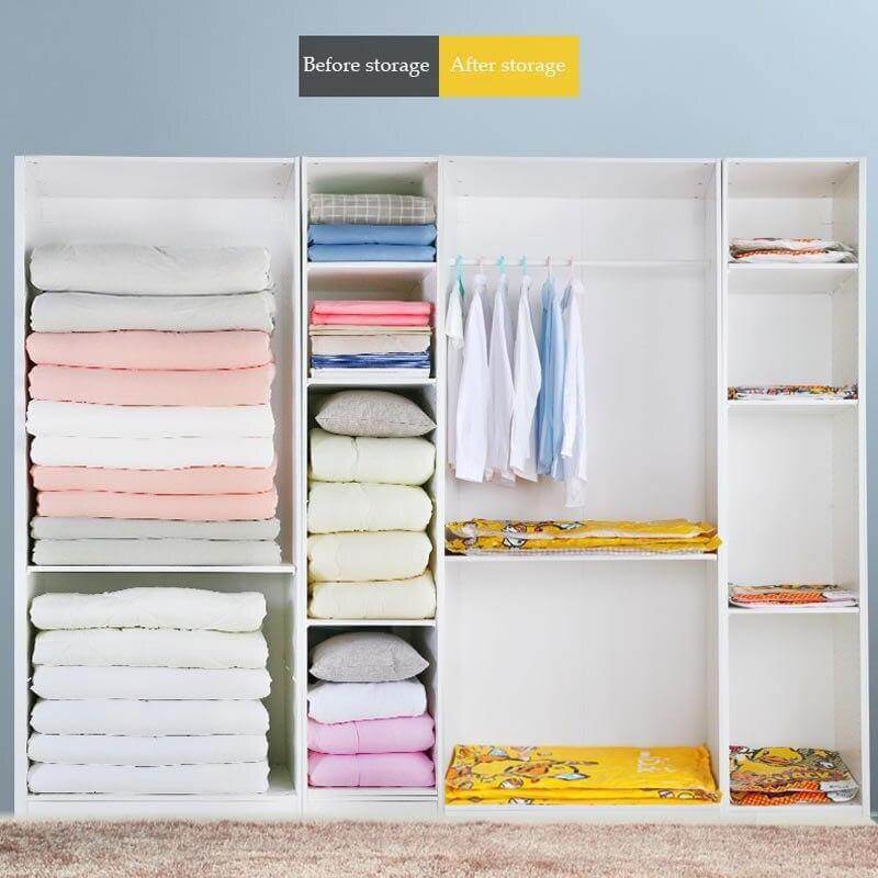 Ready to get organized? We've got you covered. These bags are ideal for storing everything from clothing to bedding to holiday decorations. The Space-Saver Vacuum Storage Bag is perfect for storing your seasonal clothing and bedding. You can use them virtually anywhere: in your closet, under your bed, in your attic. The uses are endless! It is very convenient for your daily life. This vacuum storage bag is reusable, durable, and easy to use with the easy-to-follow instructions included.